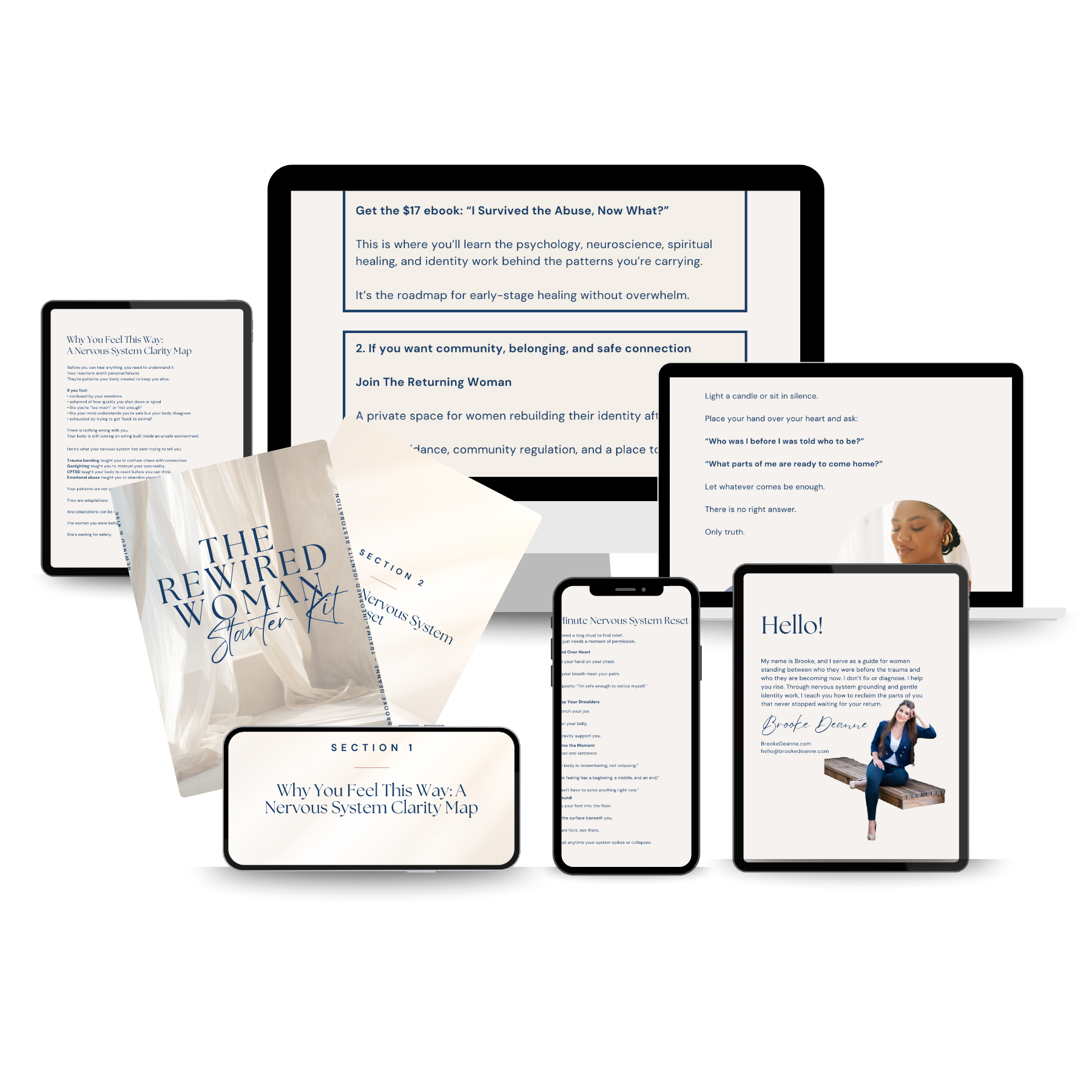 Brooke’s work is informed not only by professional training, but by personal lived experience. She understands the terrain of trauma, survival, and nervous system dysregulation from the inside out. This allows her to meet women not just with compassion, but with clarity and tools that create real relief.